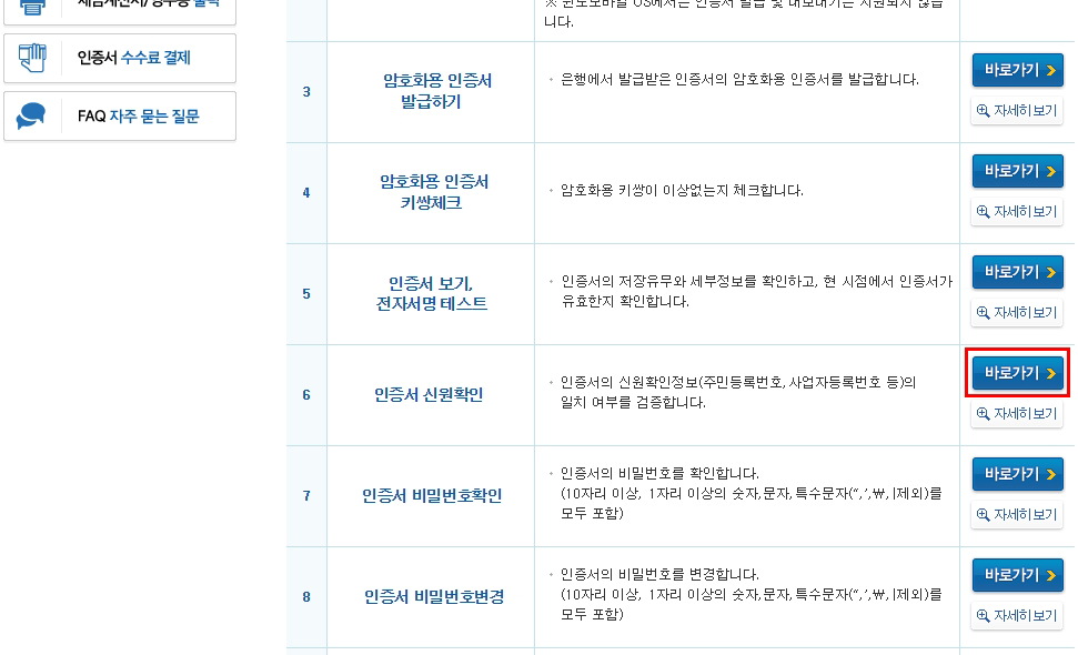 인증서 관리페이지에서