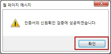 "인증서의 신원확인 검증에 성공하였습니다" 메시지를 확인합니다.